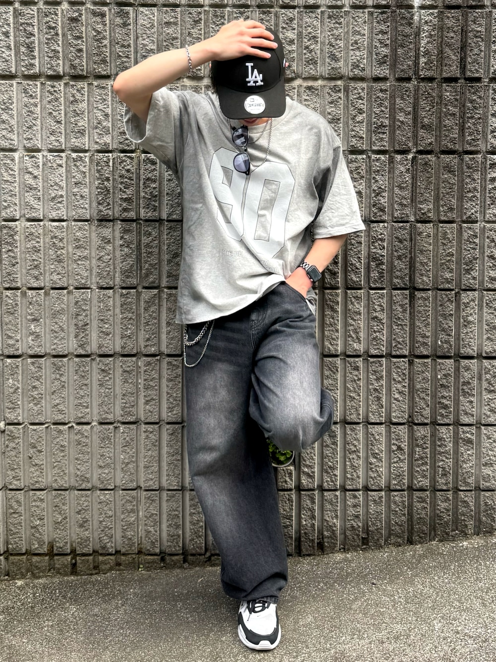 テーマをドライブデートをイメージしてコーディネートをイメージしました! 王道バルーンデニムにウォッシュ加工が施されたスウェット生地のTシャツを使用しました! モノトーンコーデでシンプルになりすぎないよう加工感のあるアイテムを組み合わせました。 サングラスをアイテムとして取り入れるだけで大人な男性にも見えます!
