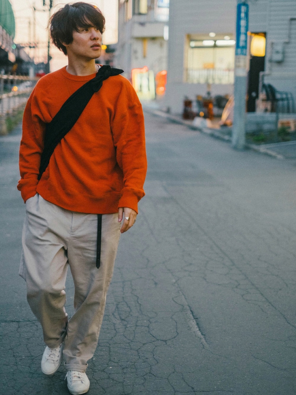 おはよう日曜日!!!🌞 太陽のようなオレンジ!どうですか!(うるさい) チノパンはニコアンドのものでワイドで気に入っていてもう長いこと履いています◎ したっけまたね〜!🙌