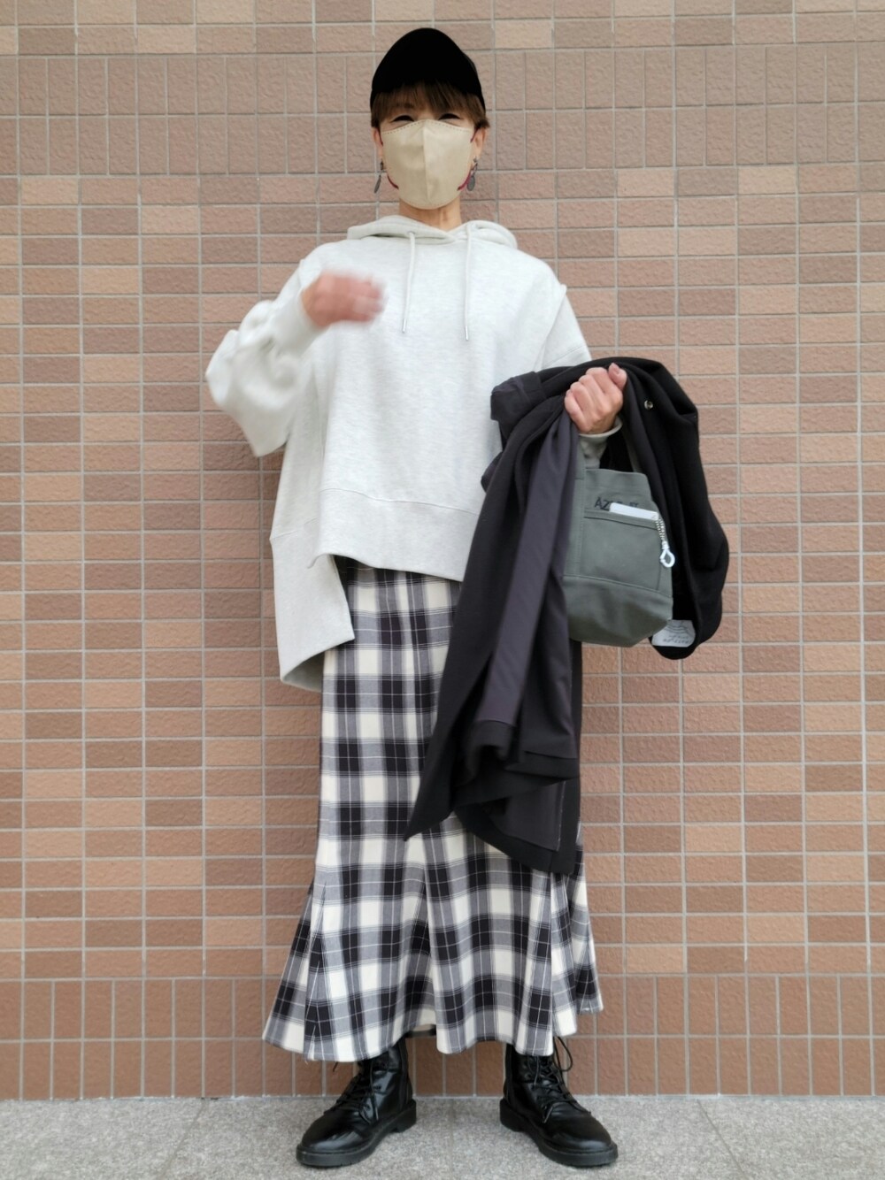 アイボリー×ブラック系チェック パーカーにマーメイドスカートを合わせただけのコーデですが、このパーカーめっちゃ可愛いし着心地良いです! 私が着てるのは冬バージョンで裏起毛になってるけど、春物で同じ作りが発売されてるみたいなのでゲットしようかどうしようか迷い中…😆