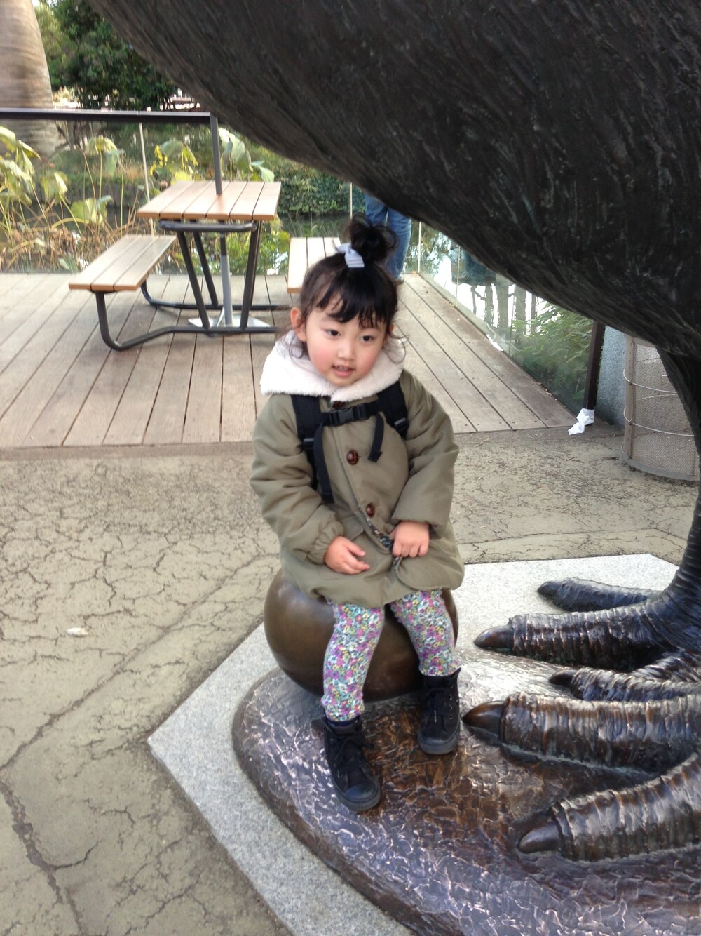 +ZARAの緑カーディガン ポアエリコートは110cm着用