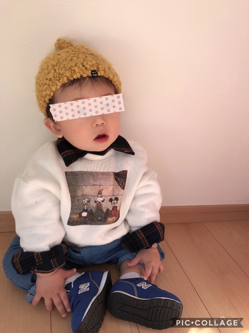 好きなスウェット×シャツコーデ💕 ディズニーのビンテージ風スウェットに落ち着いた色味のネルシャツでレトロ風に😊👐🏻 ジーンズも合わせて薄めの色にしてレトロ感が出るようにしてみました。 マスタードのどんぐり帽はぴったりサイズ🧢 帽子イヤイヤ期の坊ちゃんは、どうにかして脱ごうとします😂😂 今日のコーデポイントはNBのダークブルーのスニーカー👟 12センチだからちょっと大きめだけど歩くくらいでちょうどになるかな🐾 この頃の坊ちゃんは、夜更かしマンの朝寝坊マンです🤷🏼♀️🤷🏼♀️ いつも❤️📁ありがとうございます😊