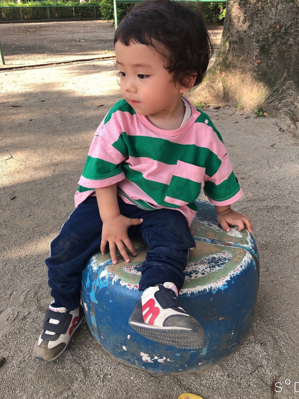メンズ会コーデ🍑 本当はスキニーデニム履いてたんだけど、💩さんこんにちはしちゃって🤣🤣 急遽買った西松屋のジャージ風デニムもどき👖← 足元がキュってなってるから、裾踏まないし800円弱ならオッケー🙆♀️ 90サイズで結構ゆとりあるから、保育園でガンガン履いてもらうことにします😊笑 復職して、なかなか会えなかったから楽しかったー! 成長した姿にびっくり👀✨✨ でも、まだ個人遊びの時期だからみんなバラバラ🤣🤣 いつも見ていただきありがとうございます😊 ❤️📁にコメ、ありがとうございます💚💗