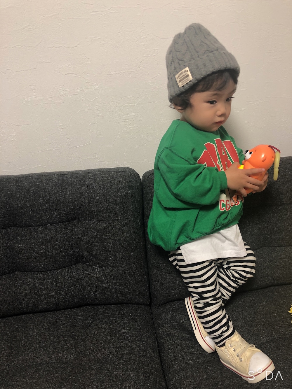 🏷レイヤードスタイル 昨日のお出かけコーデです😊 グリーンのスウェットは、袖も裾もぽわんでシルエットが可愛い💚 おとばなさんのタンクトップもいい感じでチラ見えできました👏🏻 ボーダーレギンスにコンバース風の靴を合わせて色味を抑えてシンプルに👟 靴が14cmでちょっとでかいけど、歩く時間少なければいいかなって履かせた← ニット帽は最近、私が被ると一緒に被りたいって言ってよく被るようになりました✨ 旦那さん、日付変わる30分前くらいに帰ってきて、とりあえずご飯は食べた感じ🍚← 今日はコストコに行ってきます💪🏻 あのでかいくまさん…欲しいと思うけど置き場所がないなぁ🧸笑