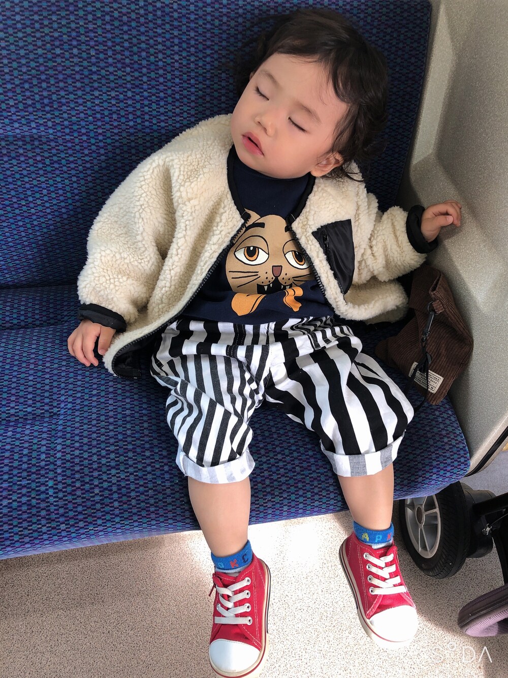 見ていただきありがとうございます⭐️ すやすやタイム😪 電車でおやつ食べたら寝落ちた🍪笑 朝は寒いけど日中はそこそこ暖かい日☀️ 裏起毛で、スウェット1枚でもOKなようにしました🐱💕 ネイビーにストパン合わせがすごい好きで、はい🙋🏼♀️夏にもやってるっていう🤣 冬ver.です⛄️笑 靴も赤合わせどんかぶりです❤️ 靴下はアンパンマン。 顔がにやけて嬉しさが声に出ちゃうくらい好きです🤤←