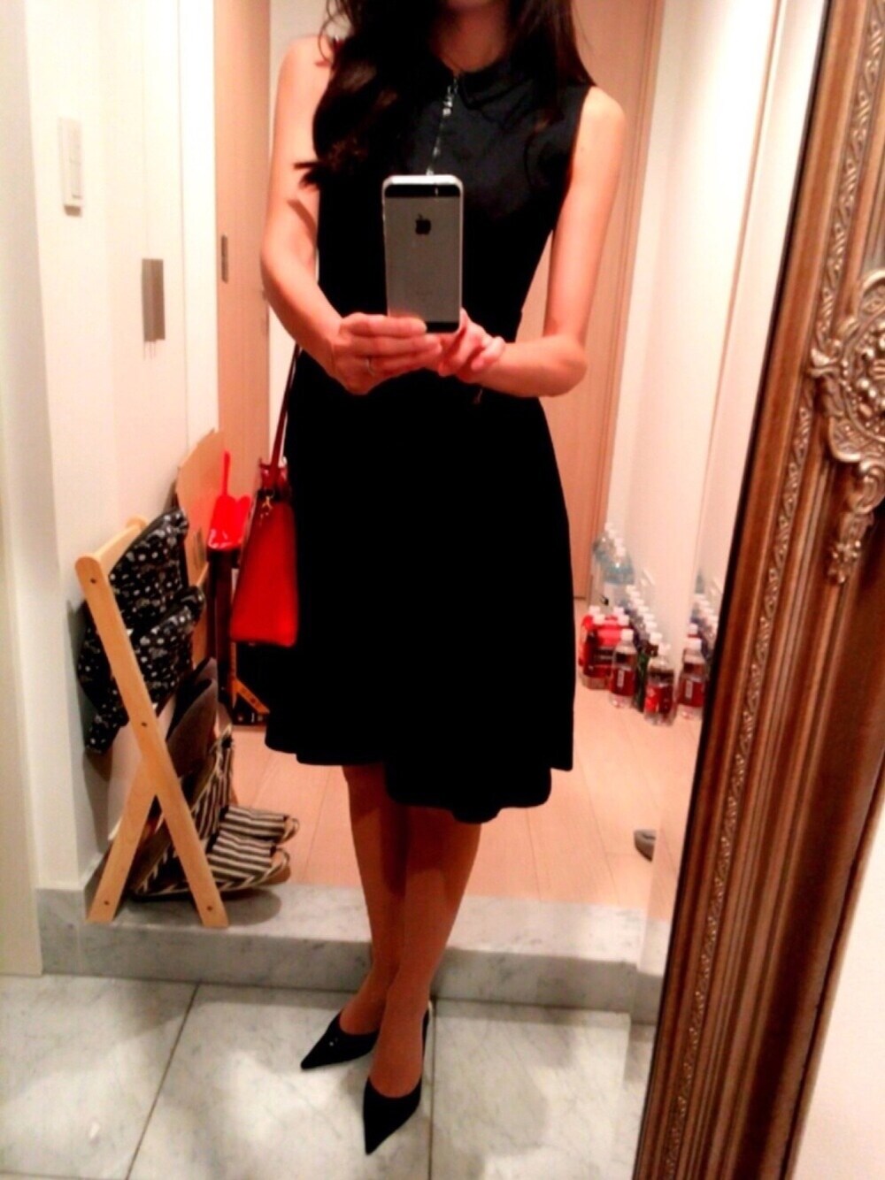 今日はご飯を食べにお出かけ。 ワンピースでおしとやか?なコーデで。 ケイトスペイド 、この歳で着ていいのか!?と思いつつ…着てしまった。 黒いワンピース、黒いパンプスに赤のバッグがポイント☆