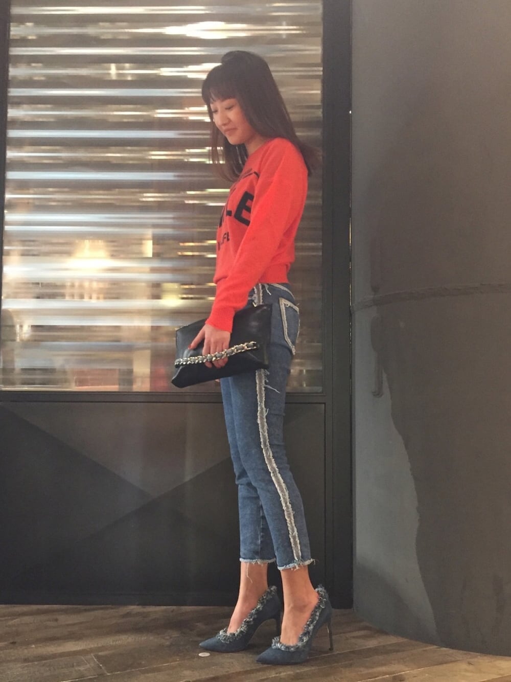 新作コーディネート💕 ラインデニムとってもかわいいです! クロップド丈でブーツやヒール、スニーカーとの相性ばっちり✌🏼
