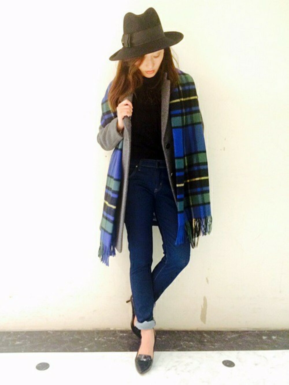 トレンドから定番となりつつあるチェスターコートを 今年はストールとの合わせも注目。大人のカジュアルスタイル。