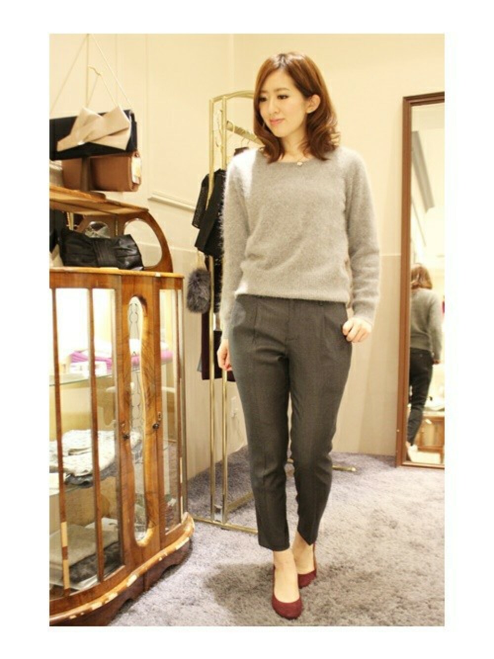 大人気のアンゴラニットはキレイにもカジュアルにも活躍してくれる優れもの。 トーンの違うグレーでまとめて大人な雰囲気に。