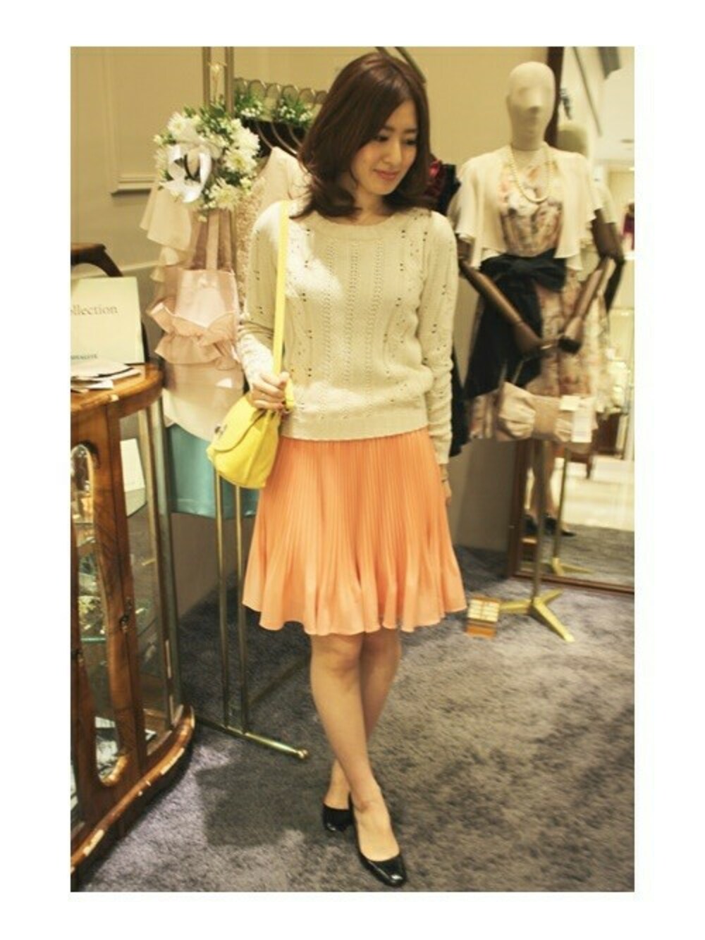 今すぐ着れる春先取りコーディネート。 この春押さえておきたいプリーツスカートを 使って爽やかな配色で仕上げました。
