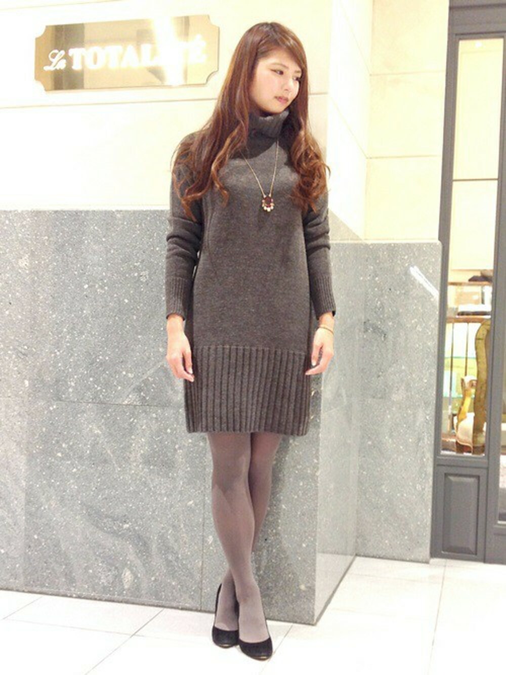 La TOTALITE Yuurakutyouのニット/セーター「タートルBOX ニットワンピース」を使ったコーディネート