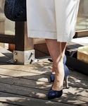 さわやかなカラーニットに、白いパンツとパンプスで、カジュアルだけどきれい目なコーディネートです。シンプルだけど素敵に。