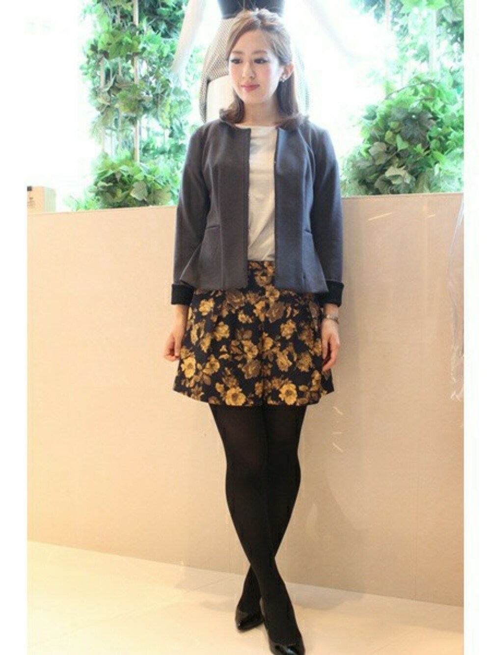 秋冬も押さえたいフラワープリントは 落ち着いた配色で大人な印象に。 カジュアルにも着れるポンチ素材の ジャケットは裏地にレースを施して 女性らしさも忘れずに♪