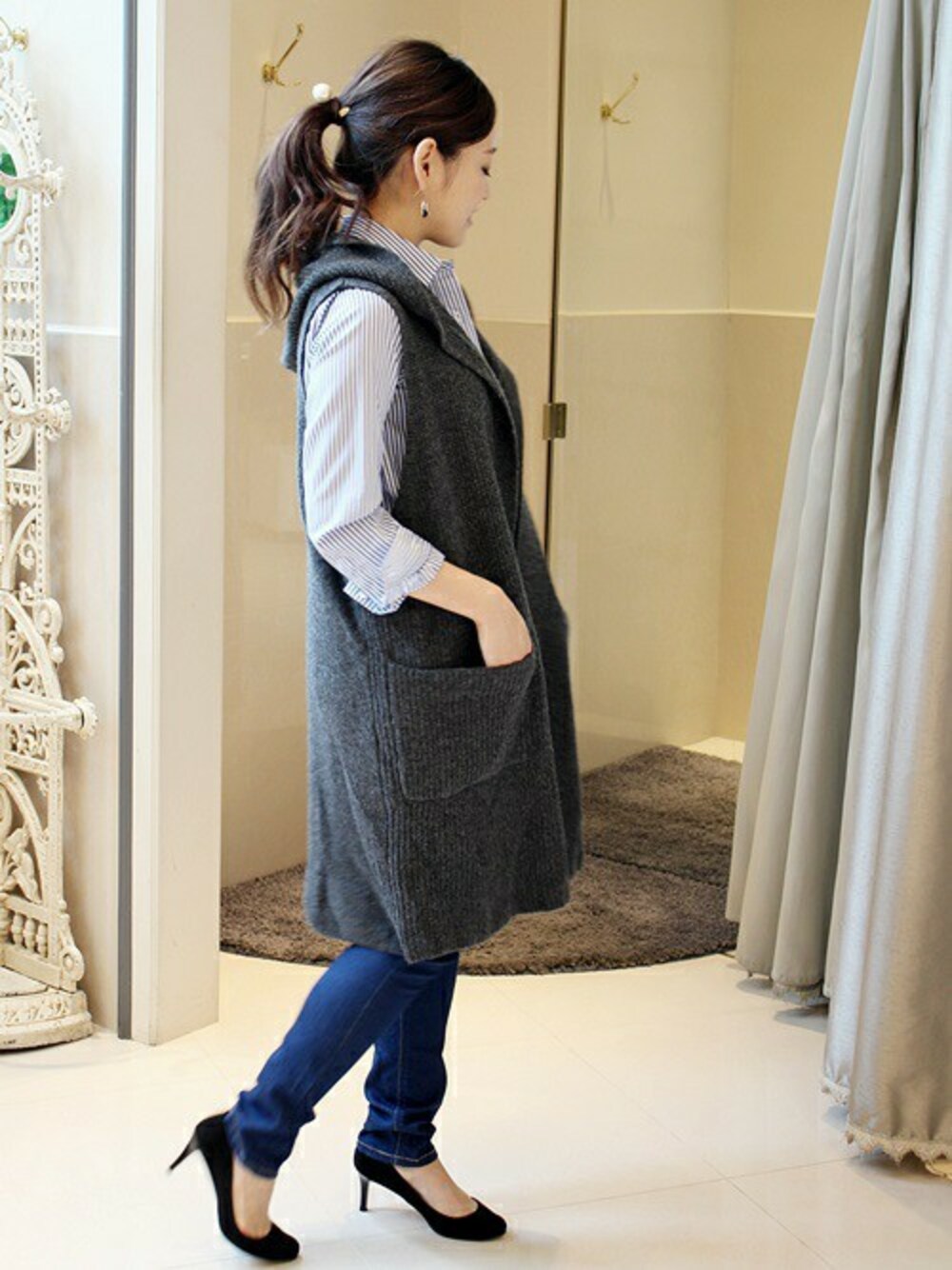La TOTALITE Yuurakutyou(La TOTALITE 有楽町店)のカーディガン/ボレロ「フードノースリカーデ◆」を使ったコーディネート