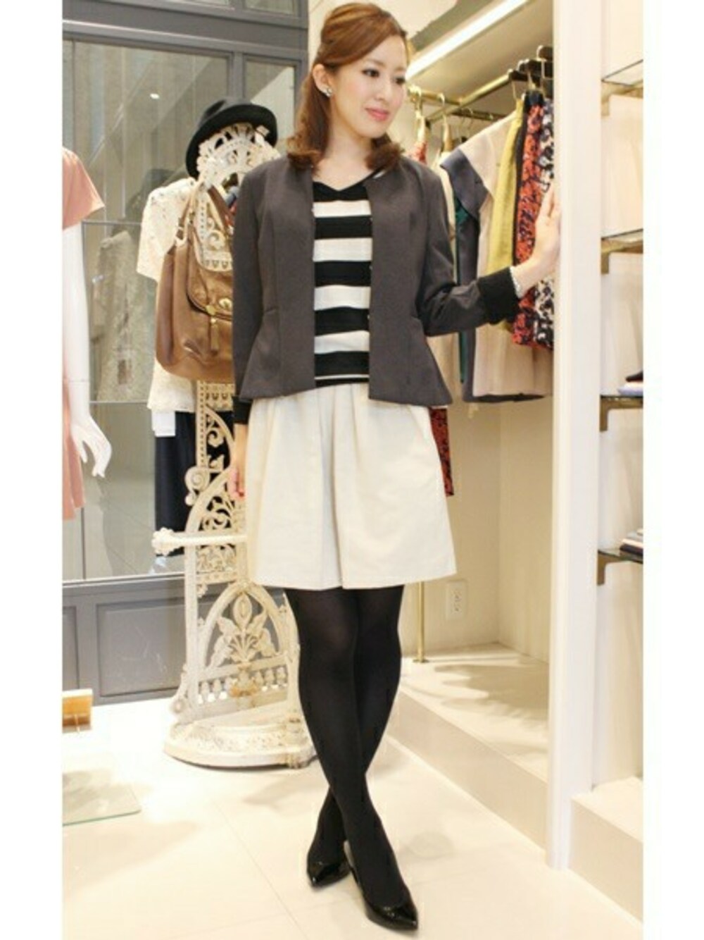 La TOTALITE Yuurakutyouのノーカラージャケット「ポンチレースノーカラージャケット。」を使ったコーディネート