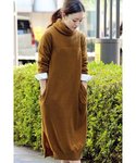 ロングニットワンピースに、今年らしくロングのダウンを合わせた、ラインを生かしたコーディネート。シューズを変えれば、カジュアルにも着回せます。