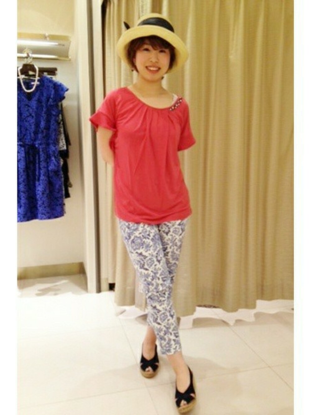 夏らしい爽やかなピンクが 女性らしい着こなしを叶えてくれます♪ トレンドの柄パンを合わせて より今年らしいコーディネートに。