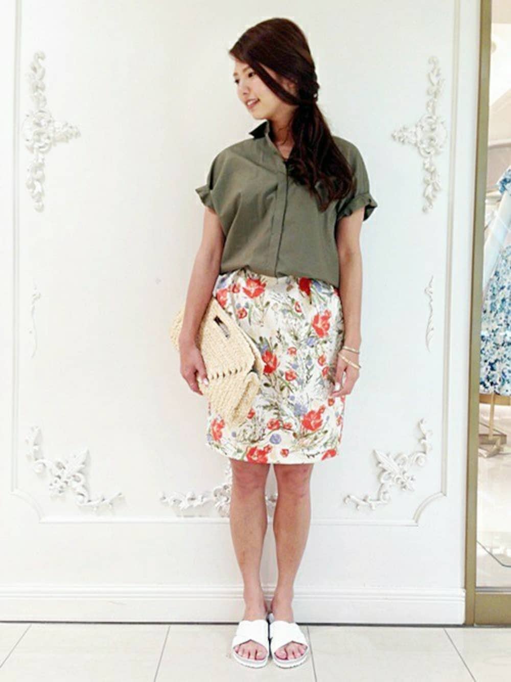 La TOTALITE Kitasenjyuのスカート「ブーケプリント タックスカート。」を使ったコーディネート