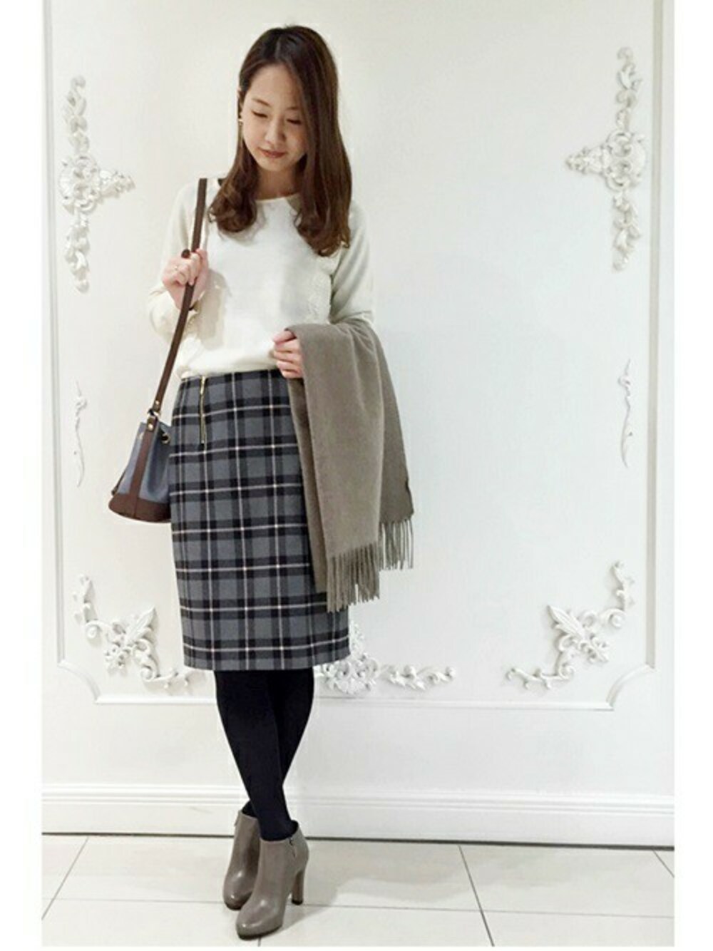 こちらはUネックのため胸元も気になりません。 レースがポイントになりフェミニンな仕上がりになります。