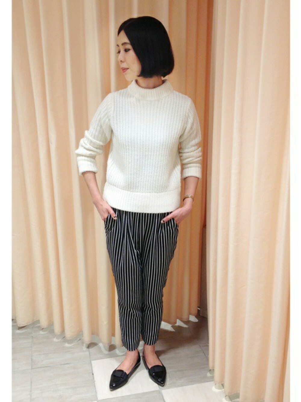 雑誌oggiで活躍されているスタイリストの佐藤佳菜子さんとのコラボ商品でのコーディネイト! ニットもパンツもどちらも着心地が良く着回し抜群です!