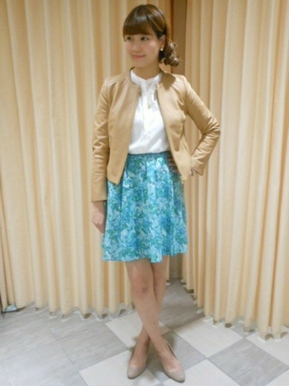 春気分を高めるリバティプリントが旬なスカート。 甘さのあるカラーリングには、レザーのジャケットを羽織って キリリとした印象に仕上げて◎。