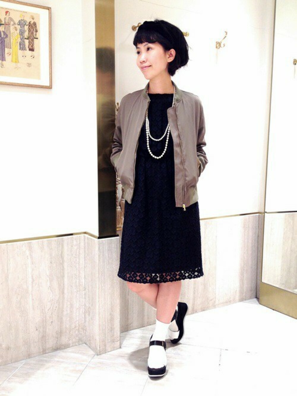 メンズっぽくならないよう肩のzipポケットなどが、そぎ落とされたシンプルなブルゾンです。ワンピースやレースアイテムなどフェミニンなアイテムとの相性抜群です。