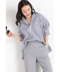 スカートはフロントスリットで 女性らしさもあり、ウエストのリボンをきゅっと結ぶことで スタイルアップもかないます。 衿元に抜け感をだし、デコルテに華奢なアクセサリーをのぞかせても素敵ですね。