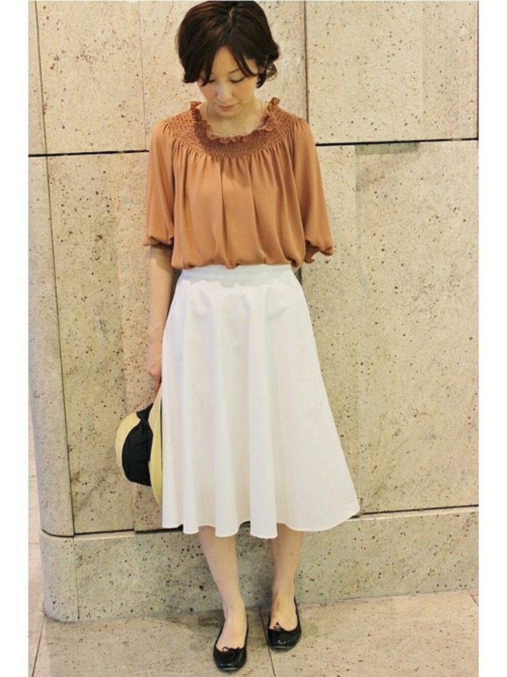 2WAYシャーリングブラウス シンプルなシャーリングブラウスは、ポリエステル素材で軽い着心地。 肩を落とせば、トレンドのオフショルダーでも着られます!