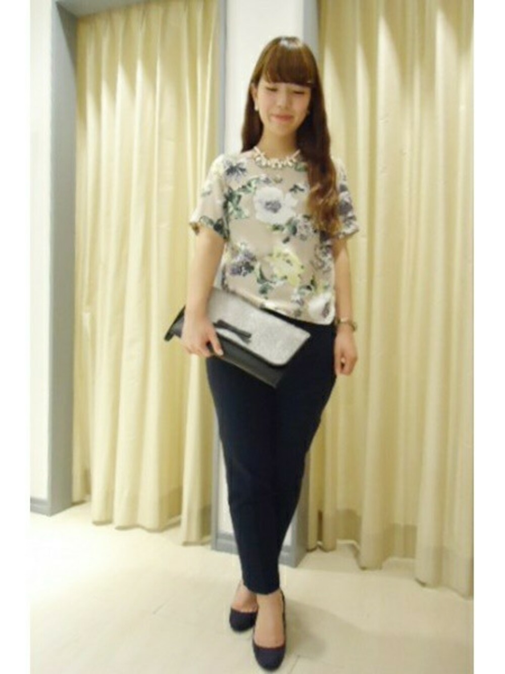 La TOTALITEこだわりの オリジナルフラワープリントブラウス。 落ち着きのある配色で 一気に秋らしい印象の着こなしに♪