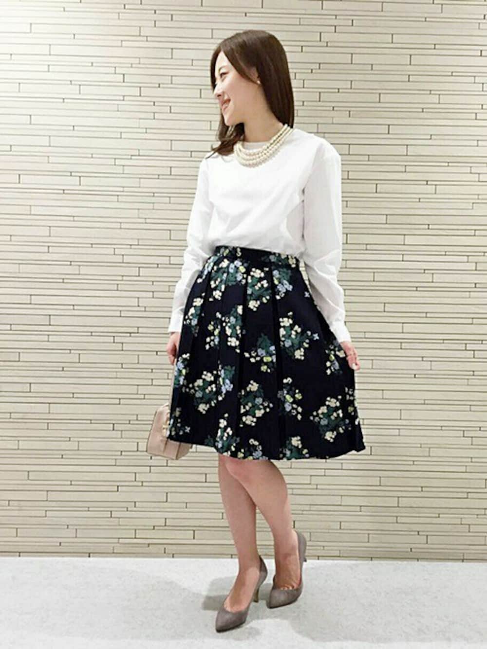 シンプルなブラウスと合わせ、爽やかなスタイリングにしてみました。 丈感も安心して着て頂ける膝丈となっております。