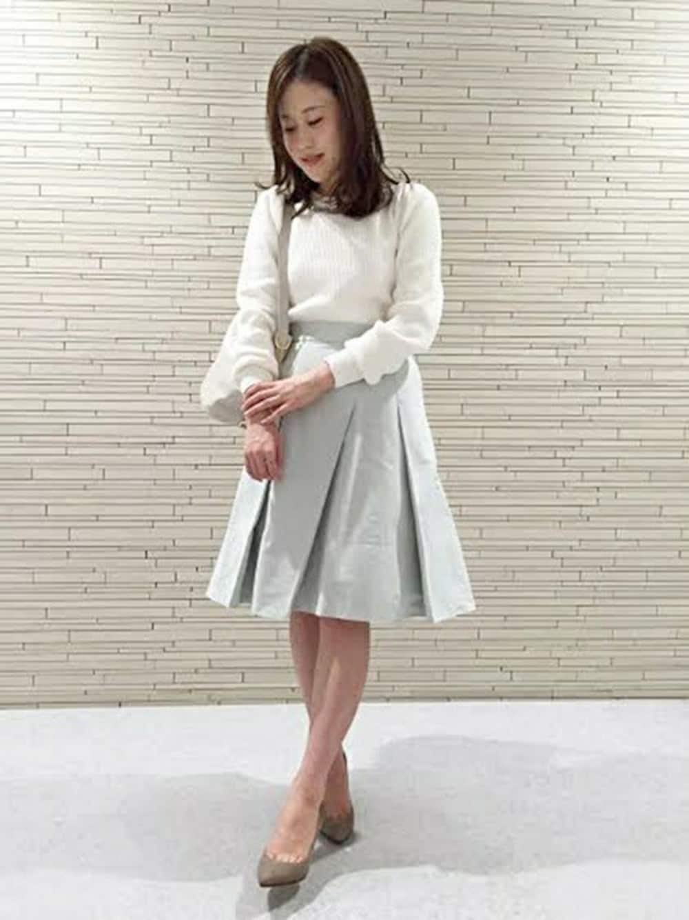 トップスには今から着用していただける畦ニットを合わせました。 ラ トータリテらしい、かわいらしいビジューがポイントです。