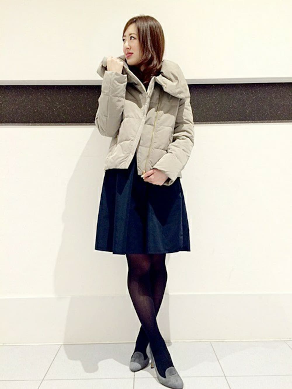 ワンピースにダウンを合わせて、可愛いカジュアルコーディネートです。