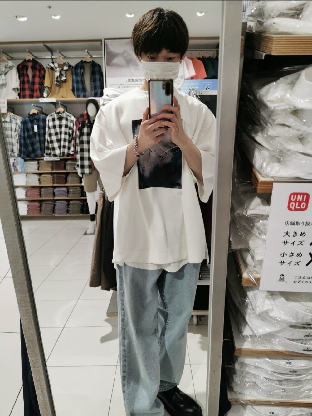 tamのTシャツ/カットソー「Oversized Mode Art Graphic Print Tee / オーバーサイズモードアートグラフィックプリントTシャツ」を使ったコーディネート
