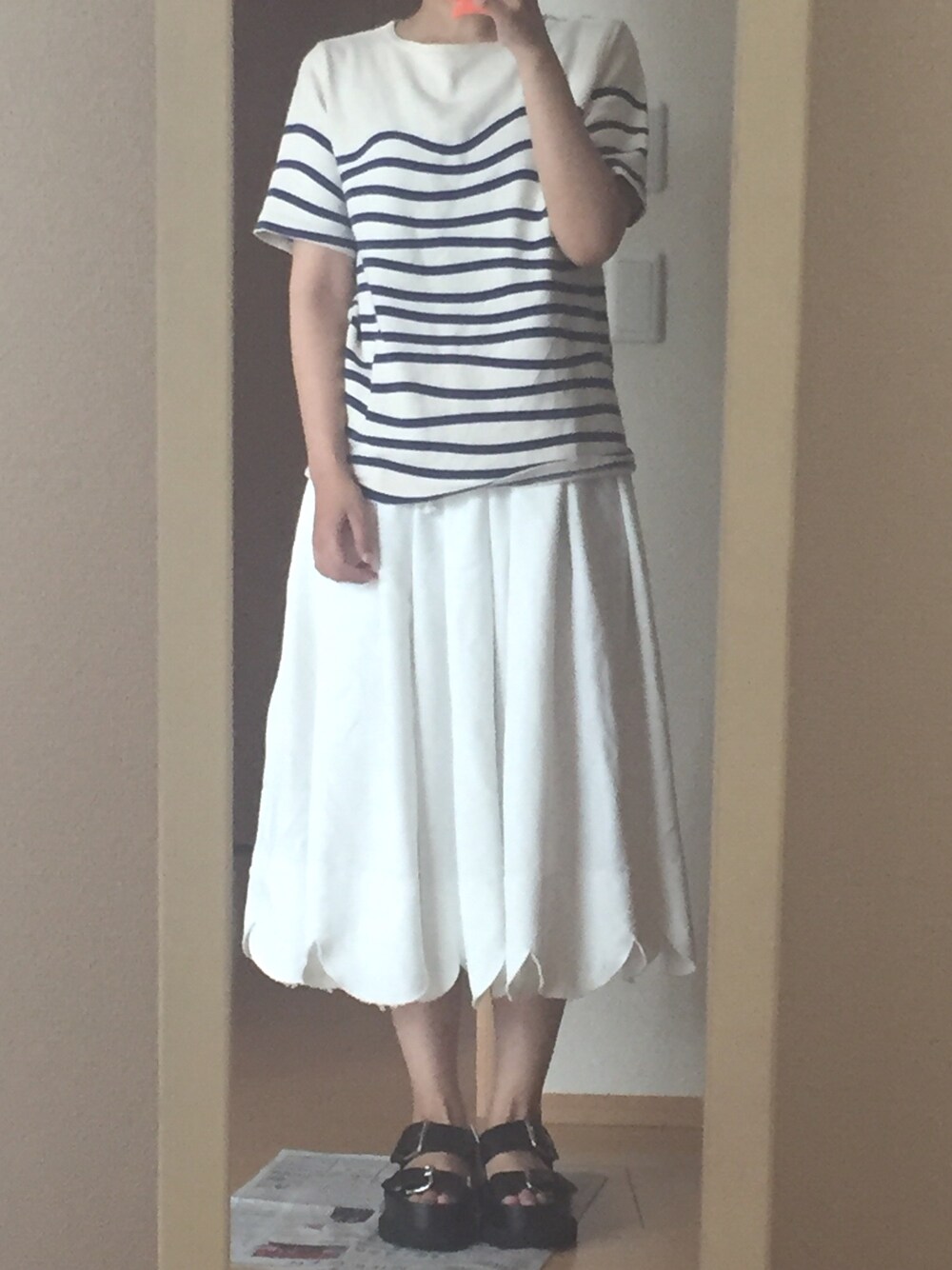 ステラのサンダルを散々悩んで安く海外サイトで購入。ボトムにボリュームがあるものでコーディネート。新聞の上にのってるのはご愛嬌笑 白のスカラップスカートはフォローしてる方が履いてるのを見て!!すぐにお店に駆け込みましたー。お気に入り💕