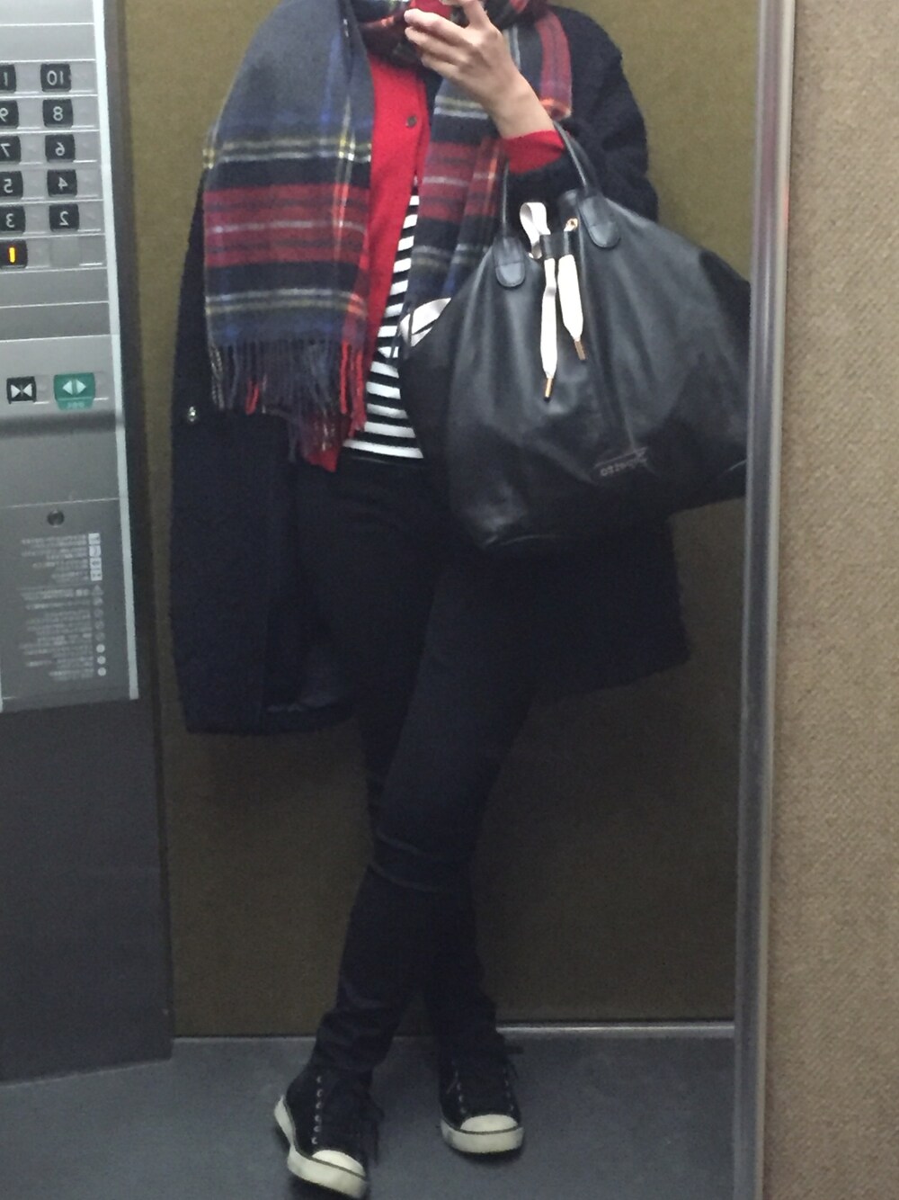 初スキニーは長めコートで。 結局伸びるスキニー多し、高めのお値段でしたが購入。ガンガン履きます。