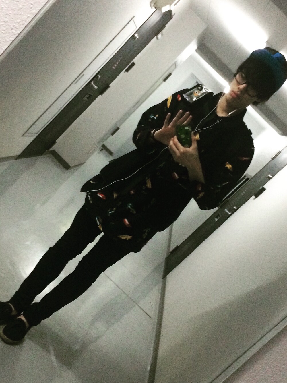 一個前のコーデのシャツのボタン全部しめて、髪おろして、メガネかけてるver. 夜は全然これでいけた!