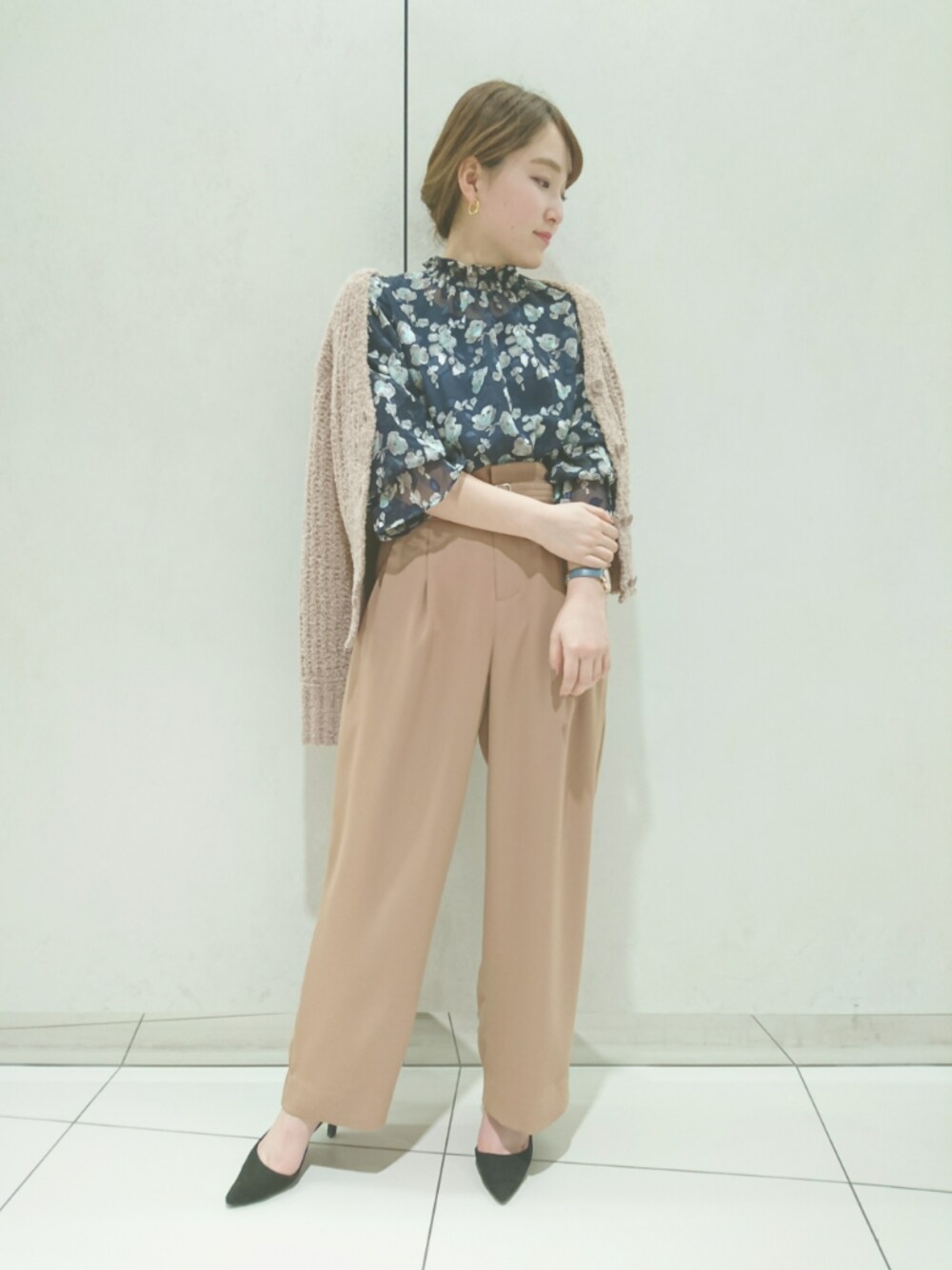 春を意識したコーデです🌸ブラウスは透けないように中に裏地がついているのでインナーを気にする心配無し🐰👐🌟カーディガンはボタンを全部止めてトップスとして着ても可愛い仕様です🐇💖💖