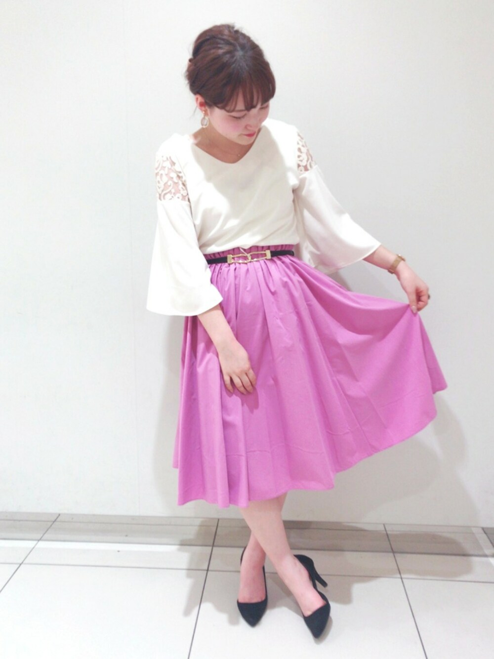 春はとことん甘く行きたい方へ🌷❤️🌷 スカートは ウエストゴム、広がらない、洗濯できますの三拍子 裏地もあります💗 トップスは去年の秋の人気商品の復活版!! 袖広がりが苦手な私もあれ?可愛いやん😂❤️ と思わずテンション上がりました💗💗 ピンクを着るとうきうきします🐰💗💗