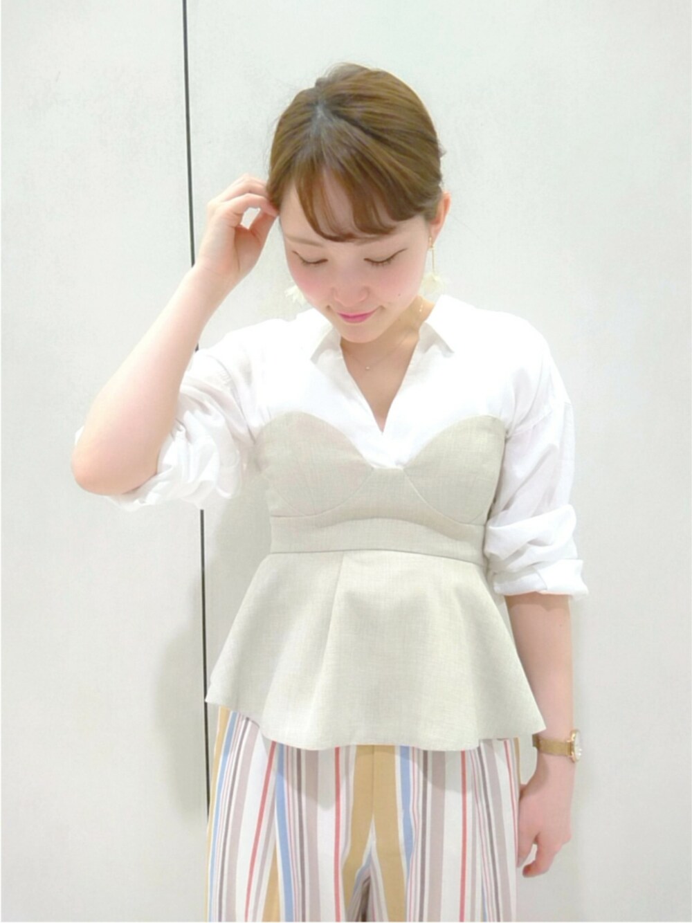 ペプラムビスチェは可愛すぎて即購入💗 カラーはネイビー、グレー、ベージュ、ブルー(web限定) 横ファスナーでゴムがきつめなので しっかり体にフィットしてくれます🐰💗 華奢な方でも安定するおすすめのビスチェです! 麻っぽい素材感なので夏も使えますよ🌞 ビスチェをプラスで取り入れるだけで とーーってもおしゃれに見えて嬉しいです😌✨