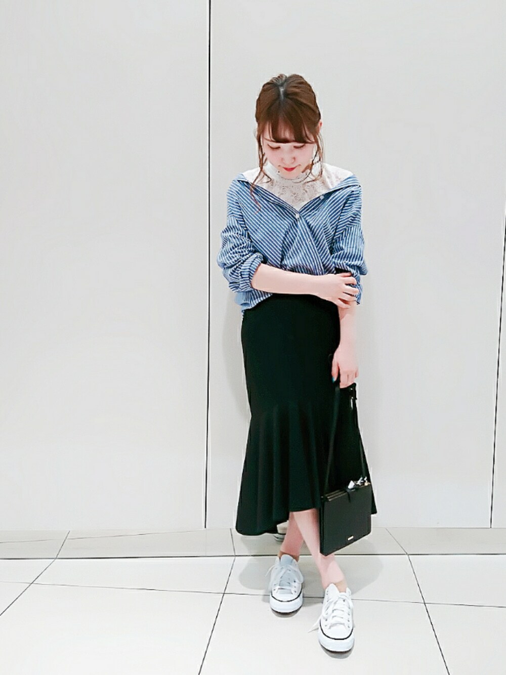いつも❤️、お気に入り☆、フォローありがとうございます☺️💗 カシュクール2wayシャツを ゆるっと着てレーストップスを重ねたら とっても可愛いことに気が付きました❤️❤️ 個人的にパンツで履くとカジュアルすぎて△ マーメードラインのスカートと合わせたら たまらんくツボなコーデになりました🐰❤️🐰