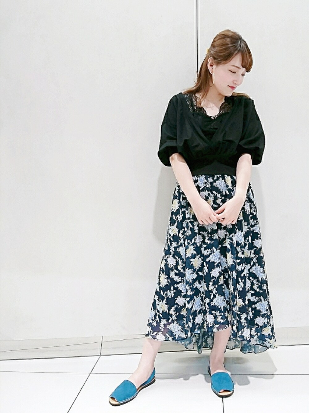 nanchのスカート「花柄ロングスカート」を使ったコーディネート