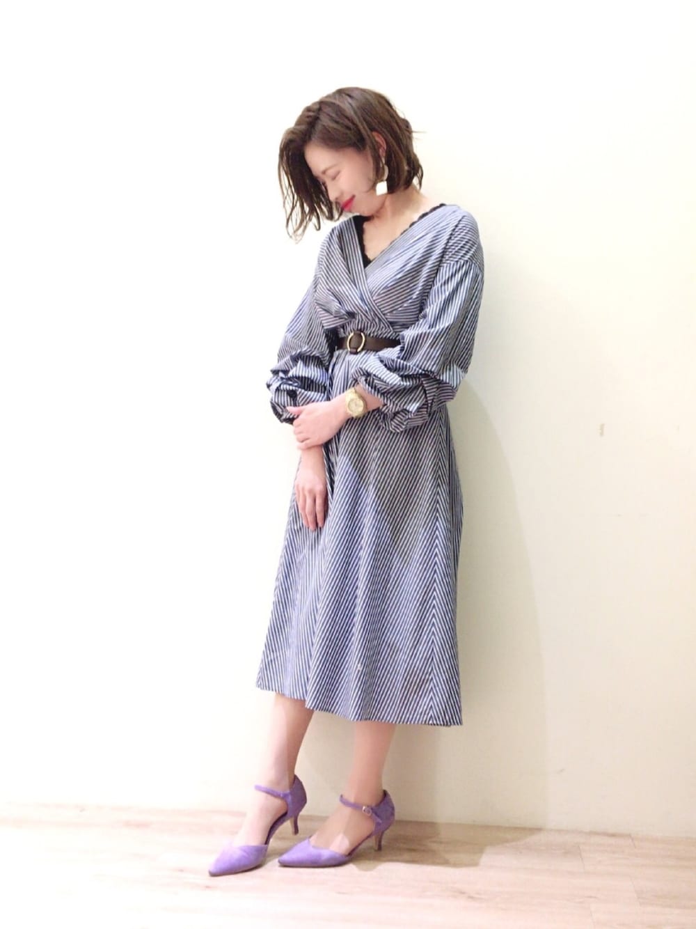 taru(LEPSIM 阪急三番街)のワンピース「カシュクールアレンジ袖ワンピース」を使ったコーディネート