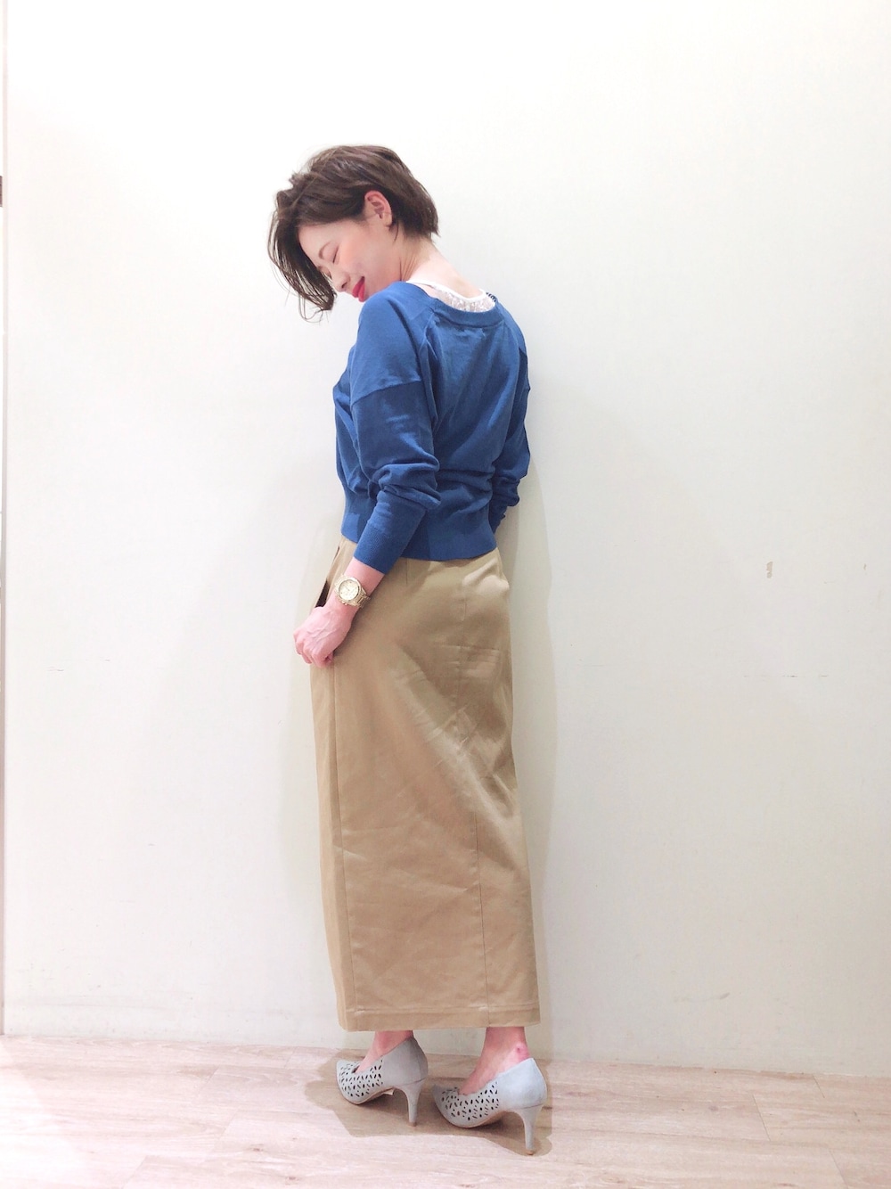 laboratory workにはバリエーション豊かなインナーあります🤭 抜襟シャツやゆるっとしたニット、オフショルアイテムとも相性抜群のレースキャミ✨ 後ろ姿まで抜かりないです👀 このロングタイトスカートは、愛用しすぎて他のカラーも紹介してますよ😊