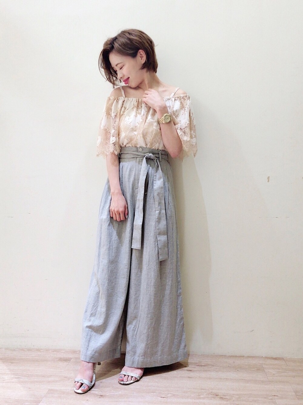 taru(LEPSIM 阪急三番街)のシャツ/ブラウス「スカラップレースオフショルブラウス」を使ったコーディネート