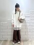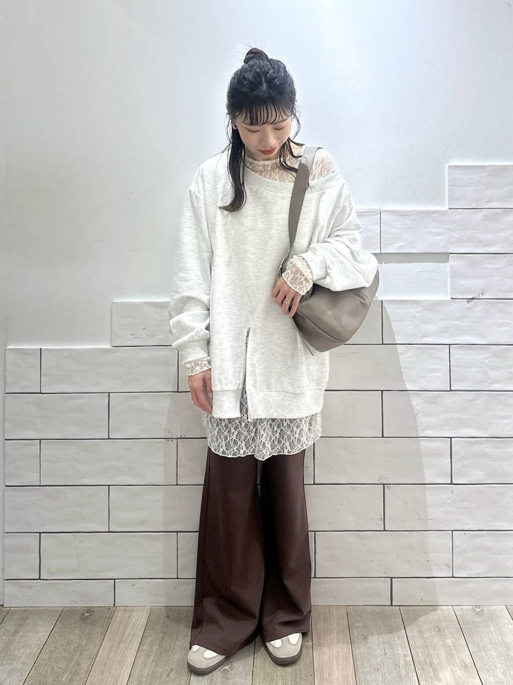 1枚で存在感のある着映えトップス 長めの丈感なのでフレアなボトムと相性◎ ボトムは伸縮性があり履き心地抜群。
