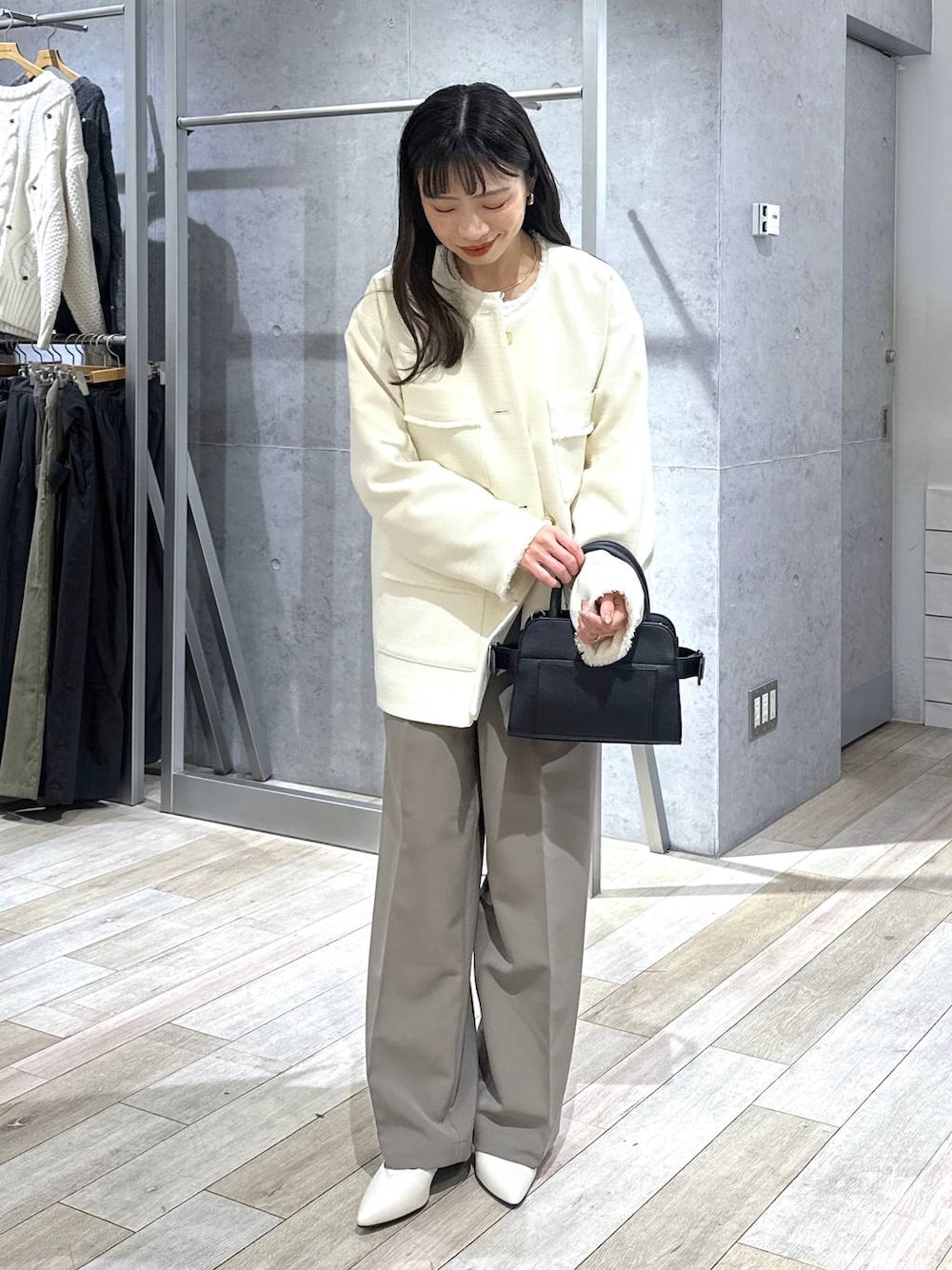 華やかなツイードジャケットは ワイドパンツ合わせで甘すぎないコーデに。 ジャケットは動きやすいサイズ感が◎ ワイドパンツは155cmでMサイズ着用 ローヒールで合わせられる丈感でした。