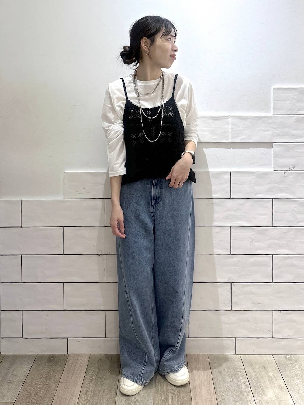 重ねるだけでオシャレ感がでる クロシェキャミは デニムと相性抜群◎ 長さ調整もできます