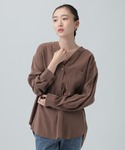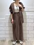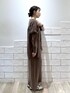 テロっとした素材感で落ち感があり 上品な雰囲気に。 首元もVネックなのですっきり着用できます◎ スカートのウエストはゴム仕様なので 履き心地も抜群。