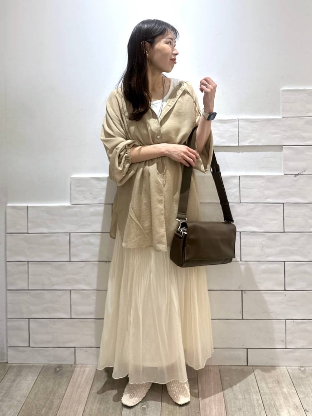 羽織としても活躍間違いなしなブラウス✨ ウエストをぐっと結ぶと スカートとも相性抜群◎