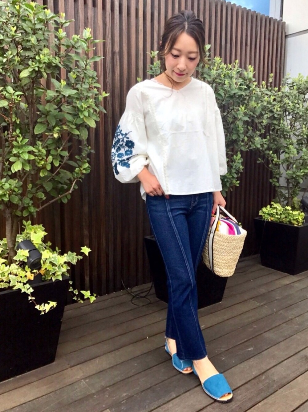 バルーン袖と立体的な刺繍がポイント! デニムでシンプルに合わせました☆