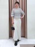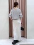○ニット 昨年も大人気でした、キッドモヘアを使用した程良いシアー感のラメニットです。短かすぎない着丈なので、インせずに裾のリブを折り返してすっきり着るのもおすすめです◎軽くて暖かく、手洗い可能な優秀ニットです♡ ○スカート リアルバイしているマーメイドシルエットのサテンスカート。程よいツヤ感が女っぽさとトレンド感を演出してくれます。ストレッチがきいているので足捌きも良いです◎バックウエストにゴム入りなので着脱が楽で、履き心地も抜群です! 38サイズ着用